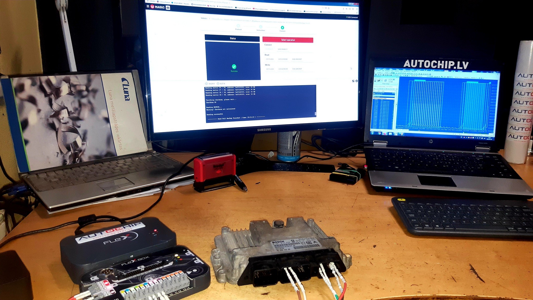 Vadības bloks nolasīts ar Flex / Autotuner bench režīmā, neatverot korpusu.